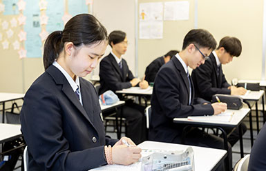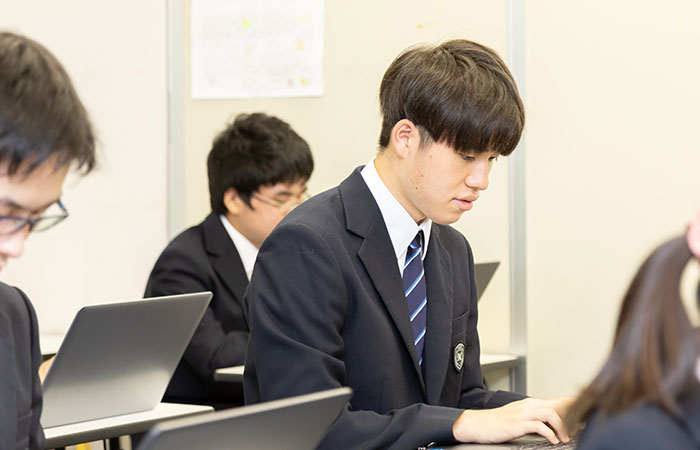午前中は商業科目を中心に、就職後を意識した学習をおこなっています。当校は商業科であることを強みにし、普通科高校では、なかなか学ぶこと・体験することが難しい内容を積極的に取り入れ、3つのコンセプトの実現に向けた力を身につけます。午後は普通科の学習内容を中心に学び直し、基礎学力の構築に力をいれています。